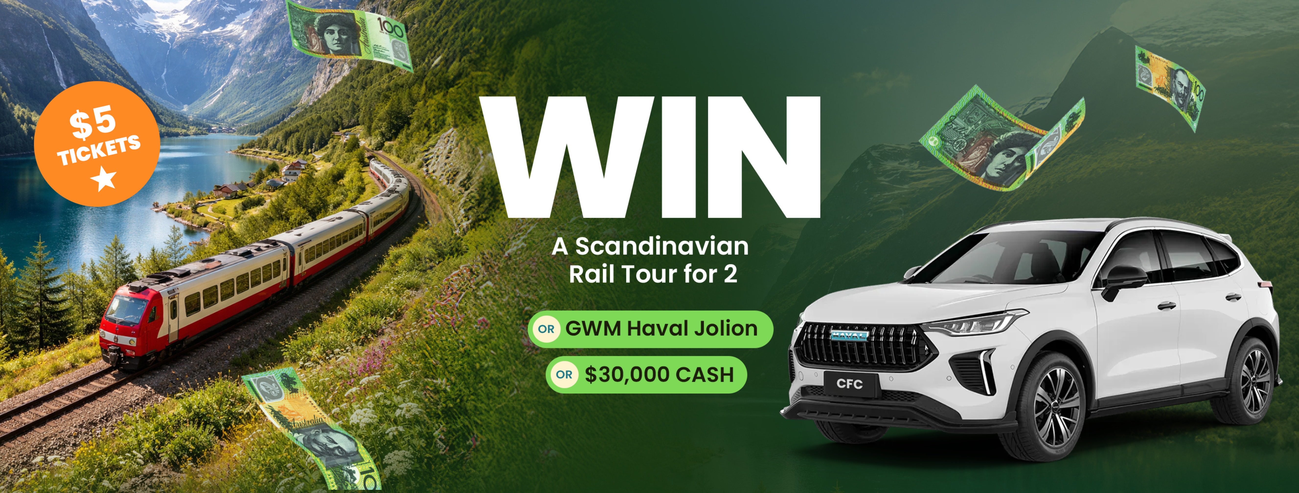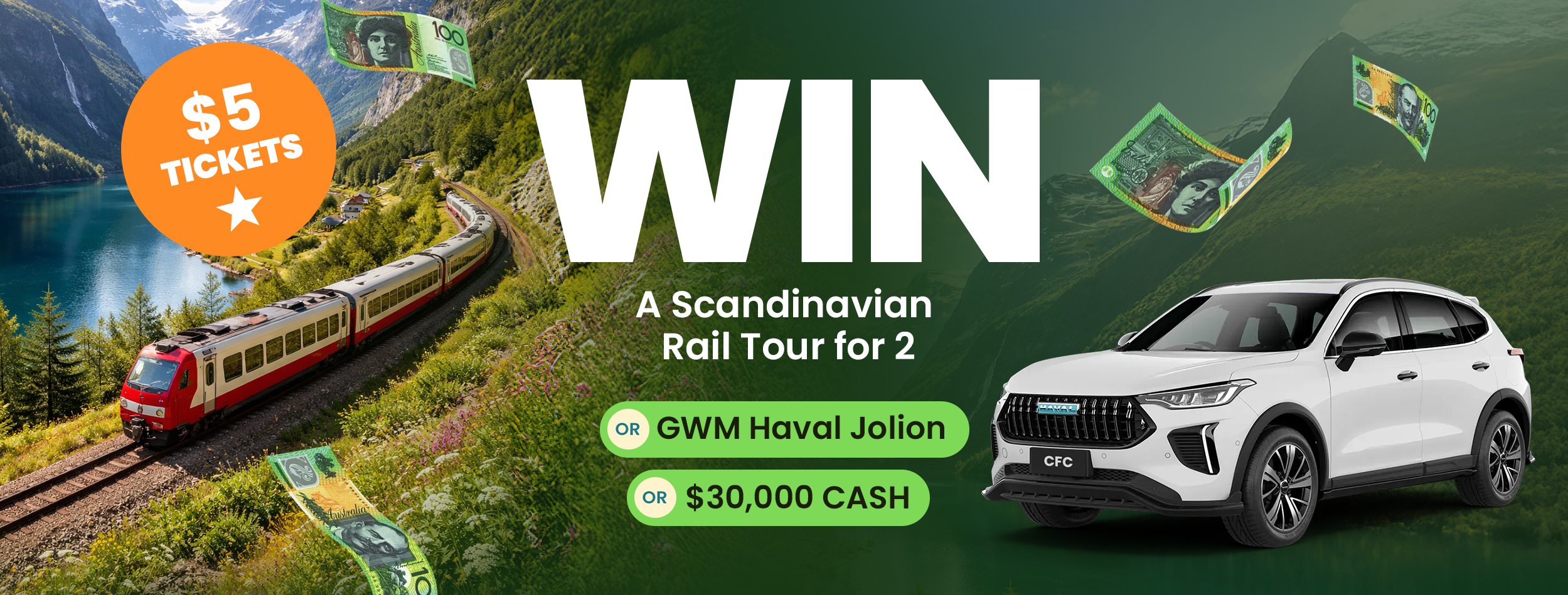 The Grand Prize winner has the choice between a Scandinavian Tour for 2, or a GWM Haval Jolion or $30,000 in cash!
