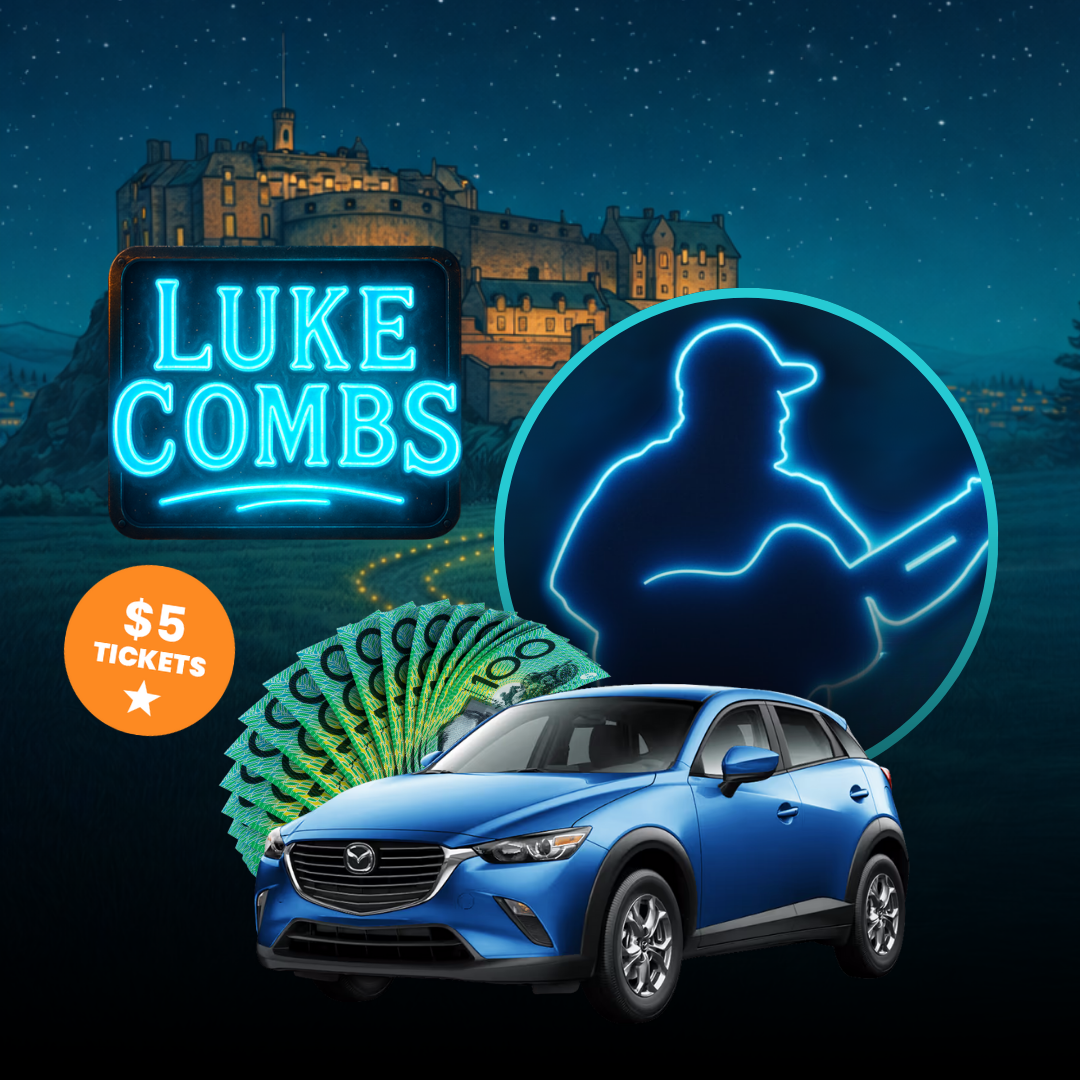 You could jet off on an unforgettable trip to Edinburgh to see Luke Combs live with a Platinum VIP concert experience, complete with a city stay, or drive away in a brand-new Mazda CX-3. Prefer flexibility? Take home $30,000 cash and spend it your way.